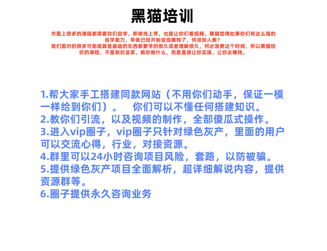 0基础培训,实操带做,都是黑猫自己跑通了的项目,可以放心上车